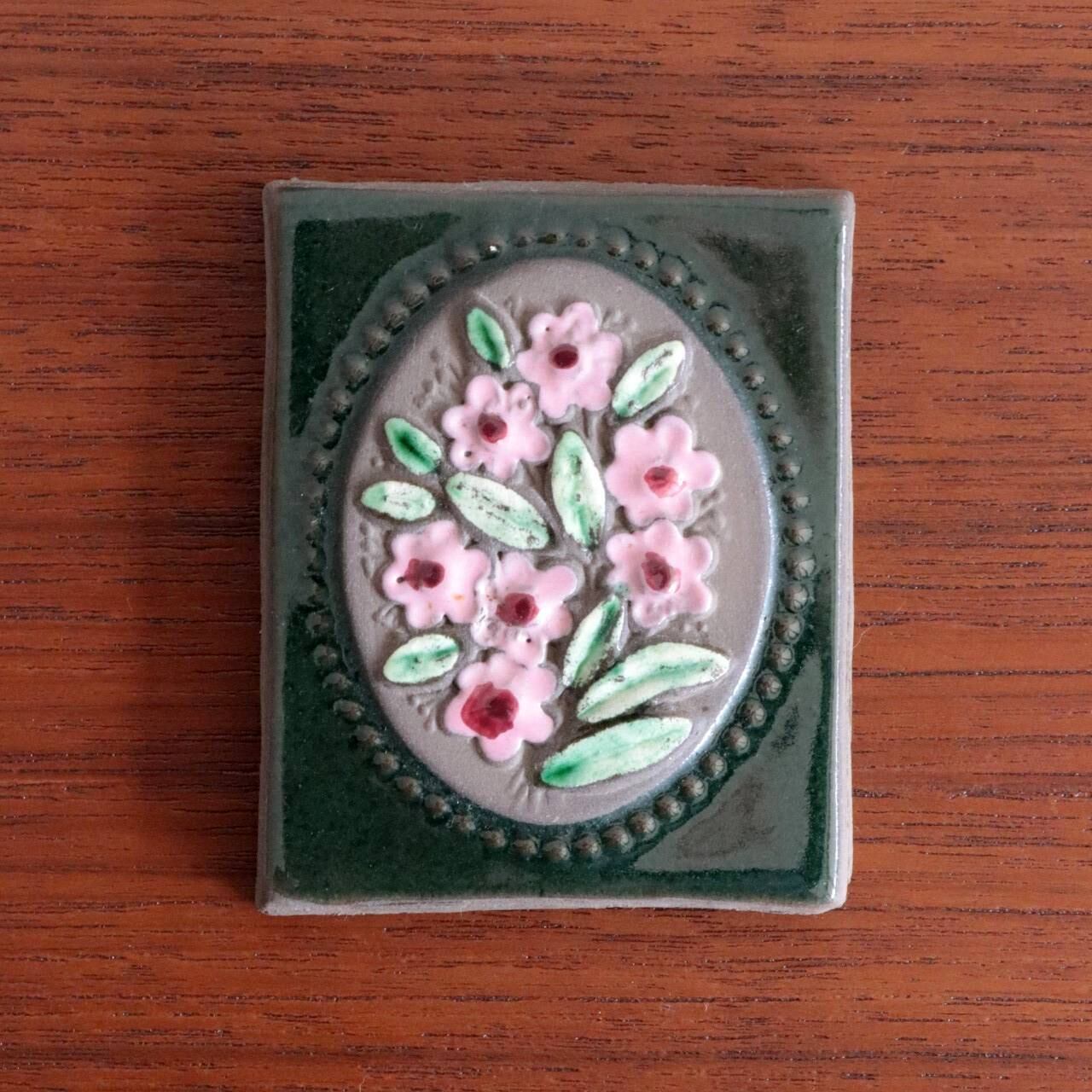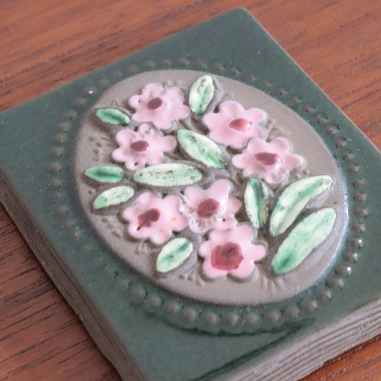 【c6966】ピンクの花の陶板(8.7㎝) [Jie gantofta / Sweden]