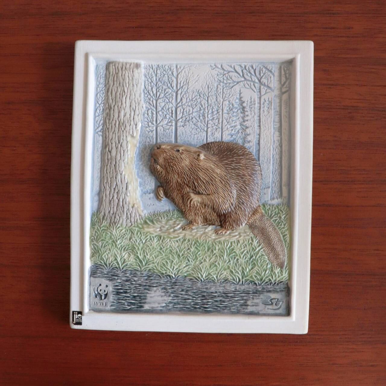 【c6980】ヨーロッパビーバーの陶板(20.4cm)/WWF [Jie Gantofta / Sweden]