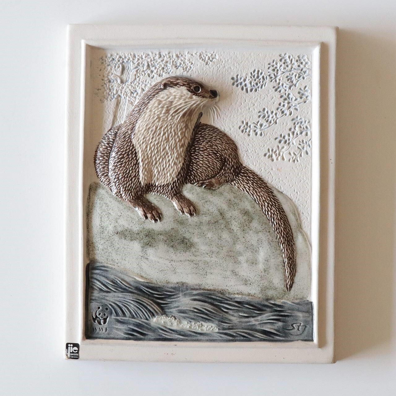【c6981】ユーラシアカワウソの陶板(20.3cm)/WWF [Jie Gantofta / Sweden]