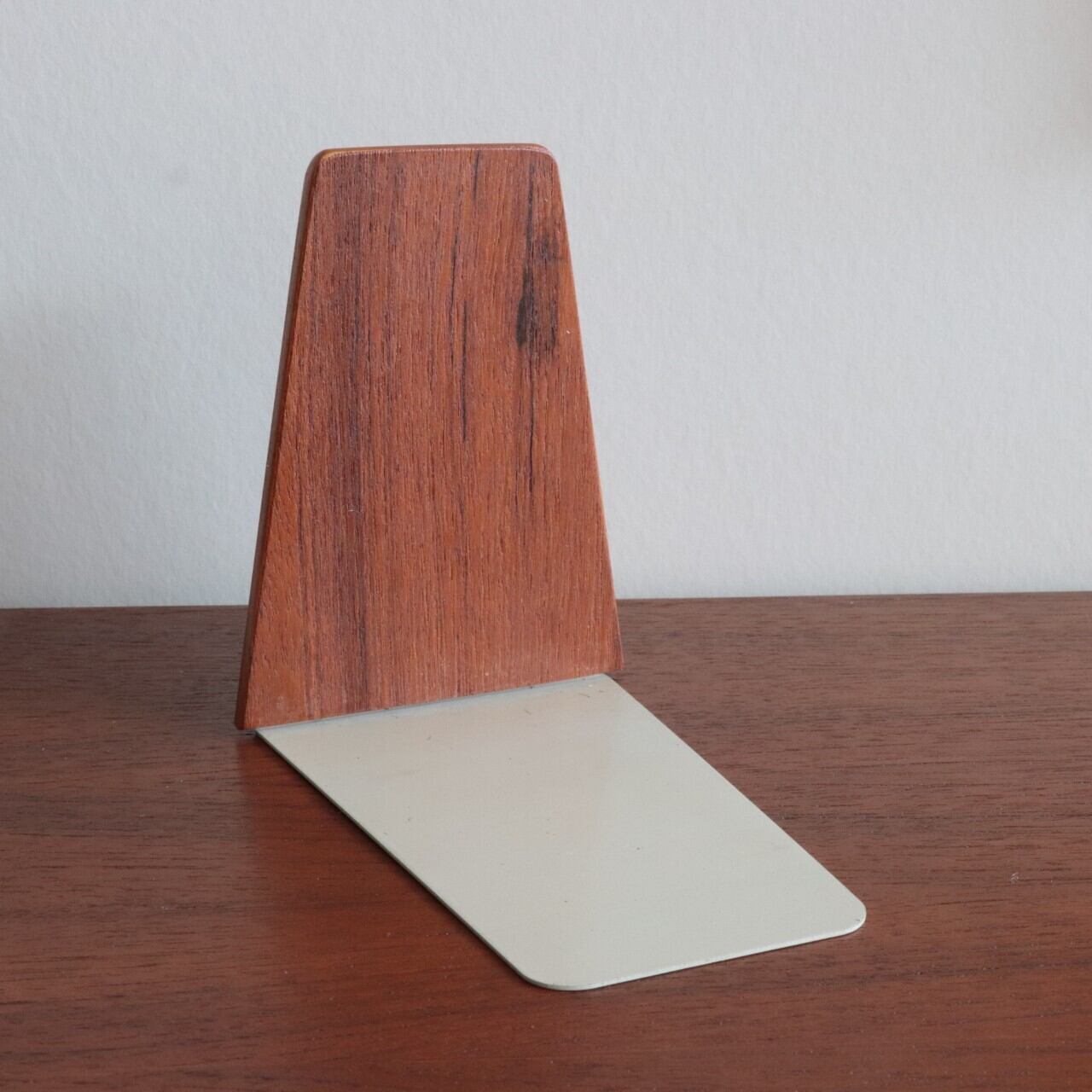 1960年代頃にデンマークで製作されたブックエンド。L型の金具にチーク材で出来たストッパーを組み合わせたデザインです。