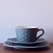 デンマークデザイン界の巨匠イエンス・クイストゴー(Jens.H.Quistgaard)がデザインを手がけたAzur(アズール/Blue Azur/Bla Azur)。エンボスで表現された杏の花の可愛らしいモチーフでありながら 落ち着いた色合いが甘すぎない柔らかさでとても良い雰囲気です。