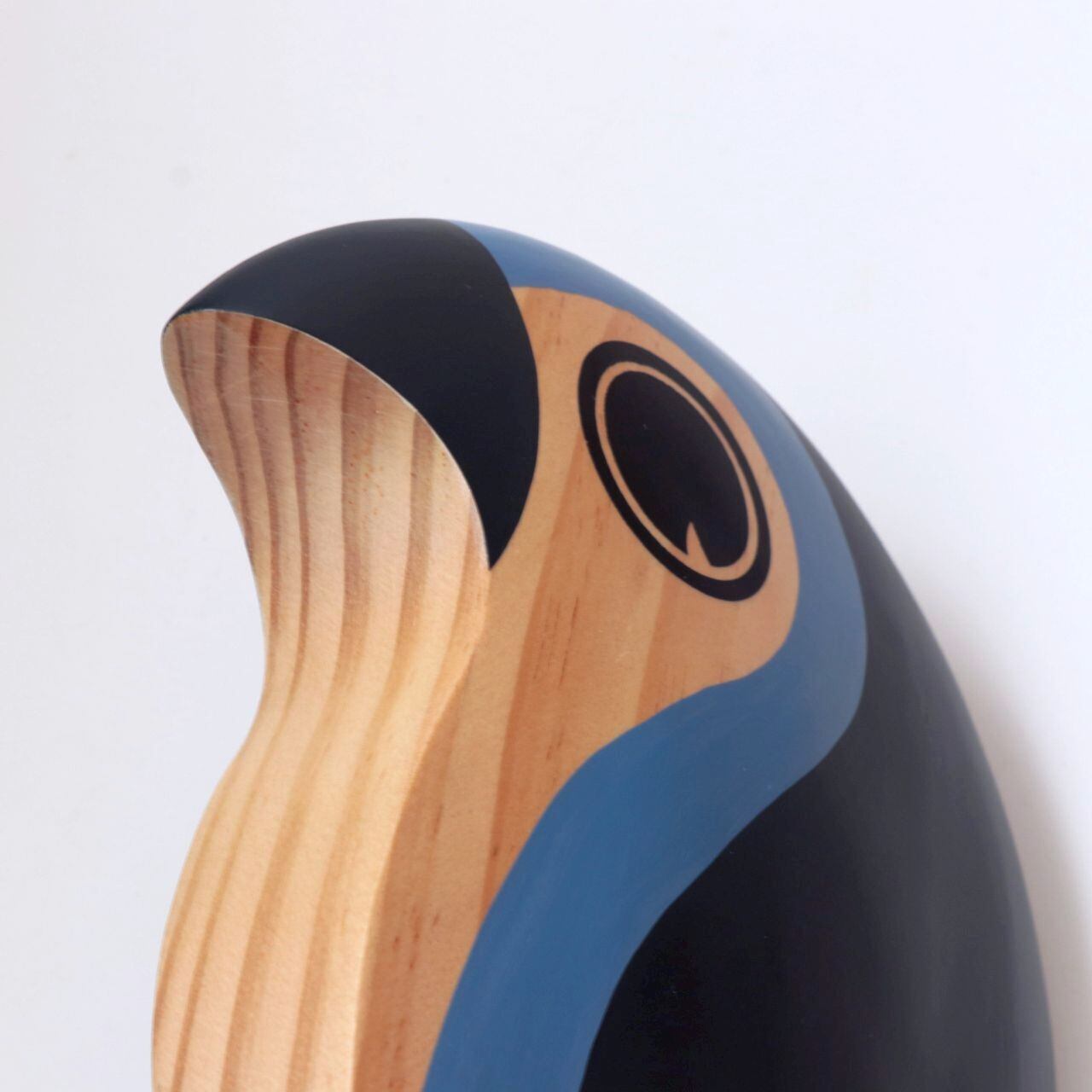 素材はパイン材が使用され、ハンドメイドで鮮やかな塗装された部分はカラフルな羽毛を表現しています。鳥たちの胸の部分は美しい自然の木目を活かすことで、着色部分との美しいコントラストを生み出しています。