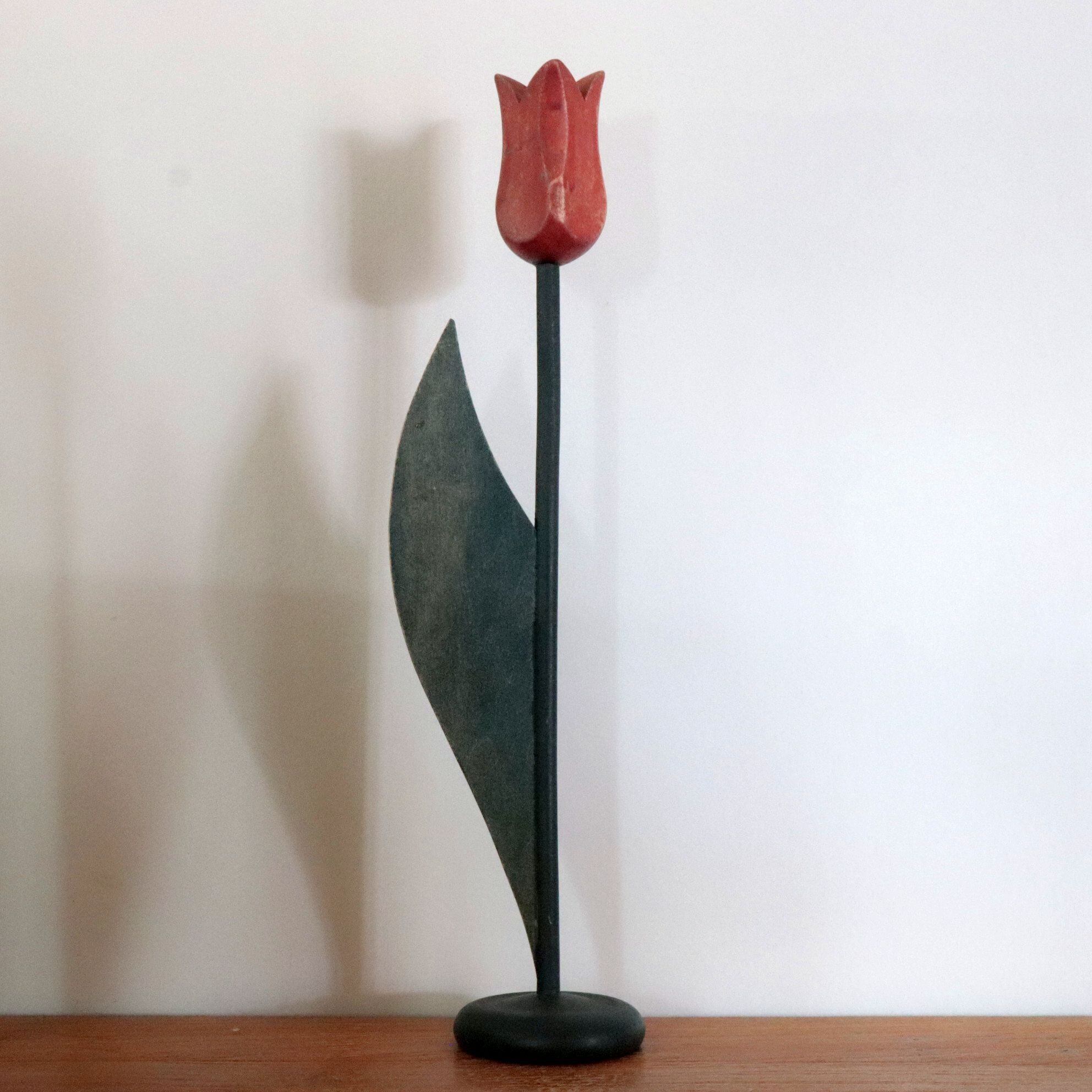 この当時、スウェーデンを中心にいくつかの工房でサイズやデザインの異なる木製のチューリップが製作されています。ほぼ実寸大で、お部屋に飾るとレトロで華やかな空間を演出できるとても便利なインテリアです。