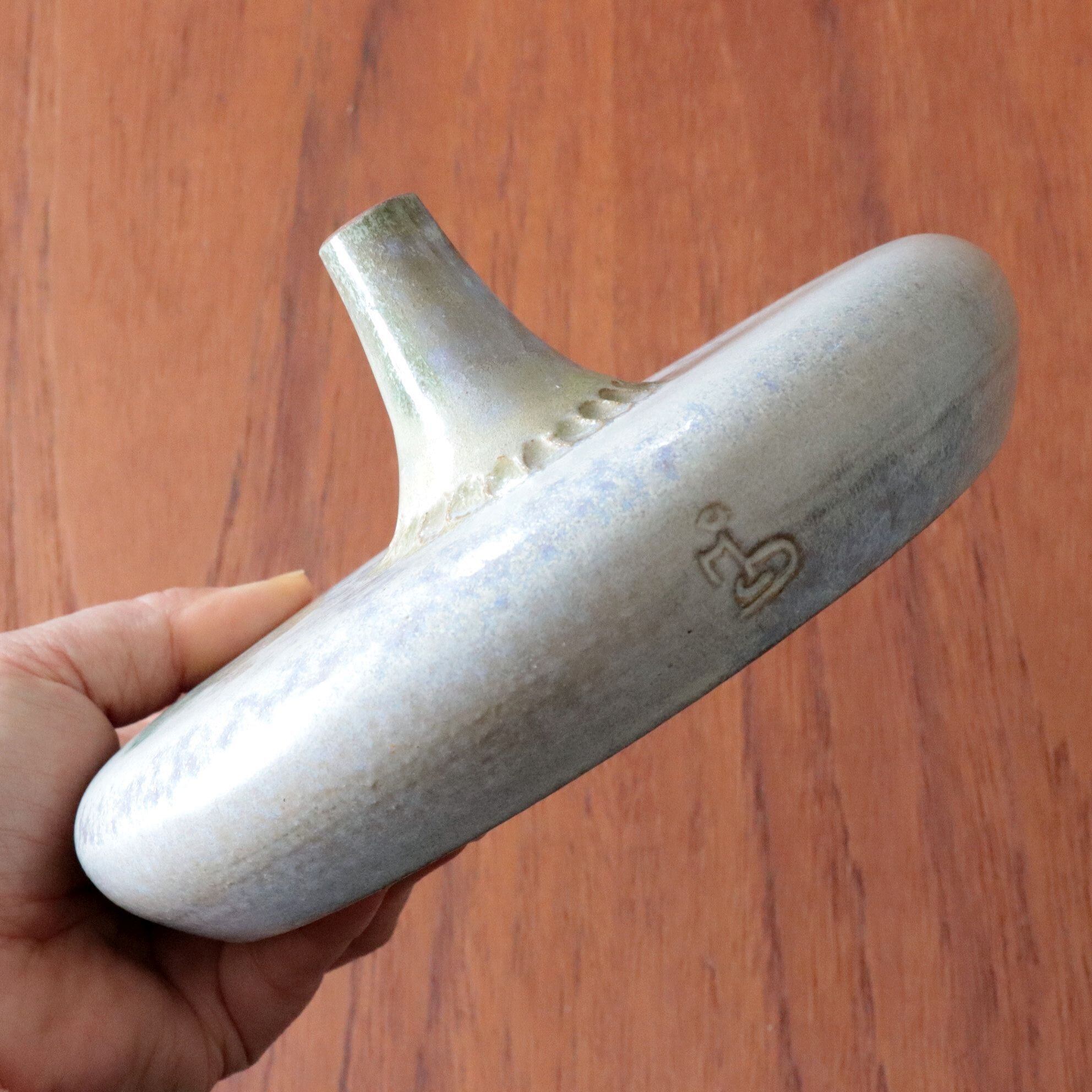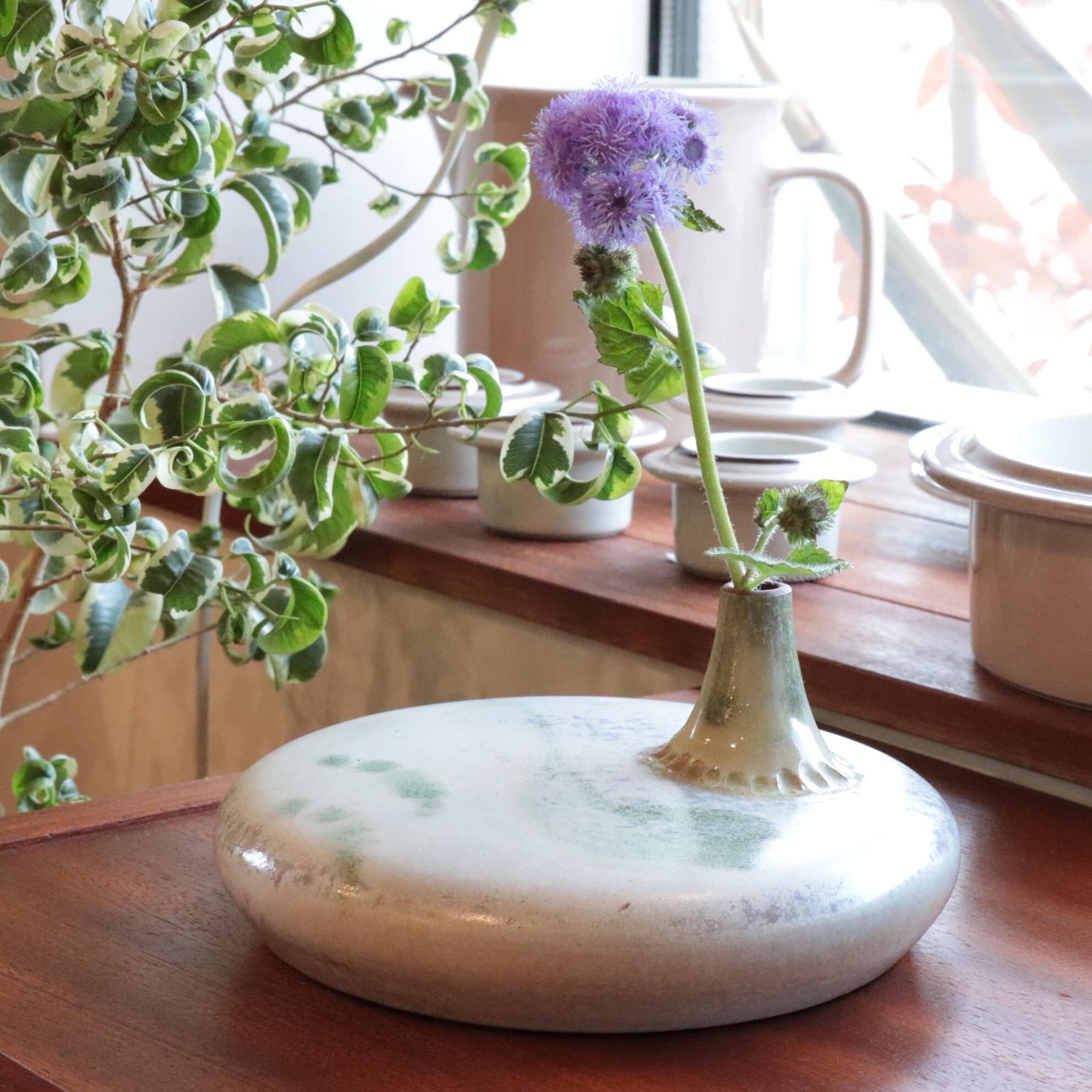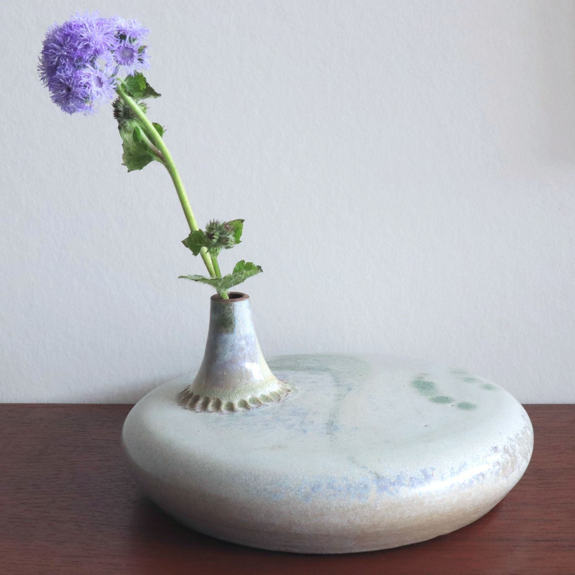 形状と緑翠色の釉薬が美しく、存在感も抜群の一点。一輪挿しとして、独特の表情を演出してくれる特別な一点です。