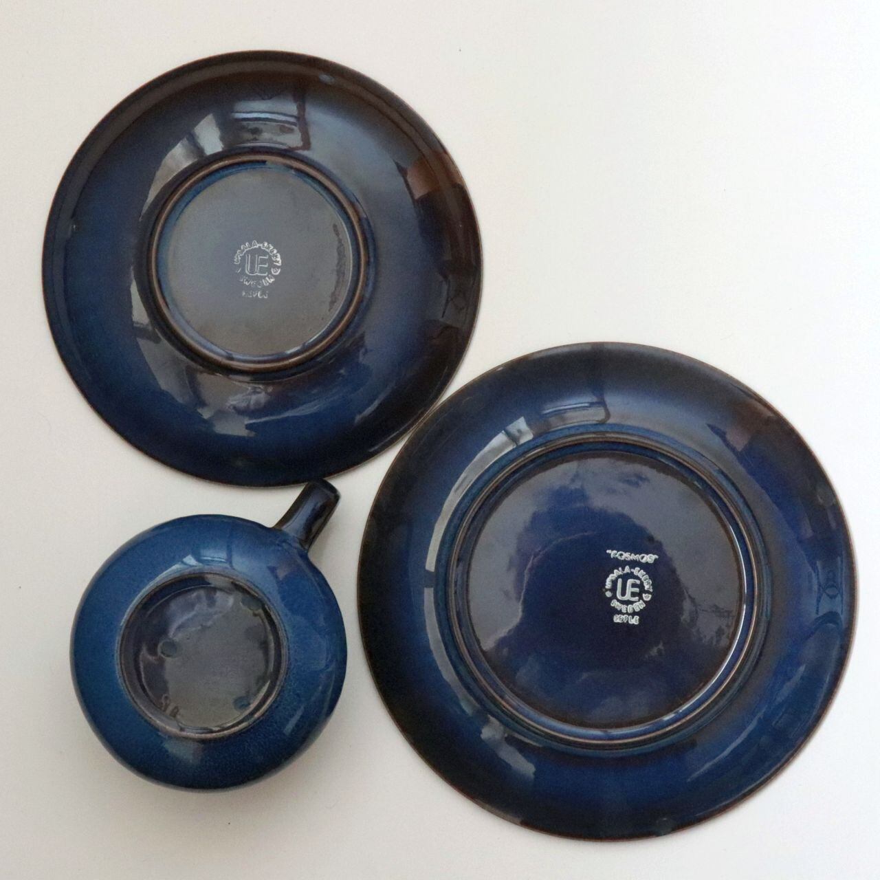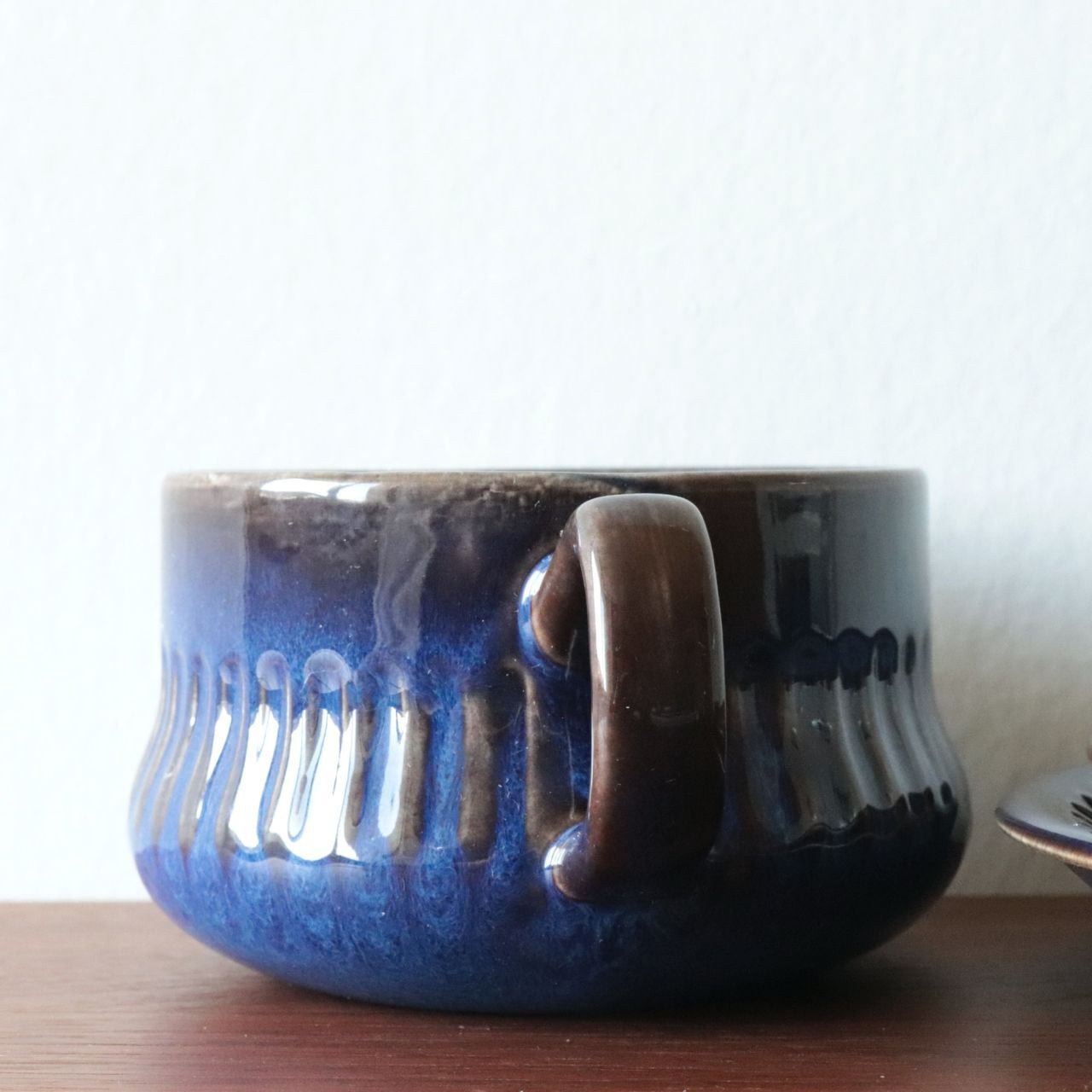 夜空のように流れる青が特徴的で、釉薬の表情によりそれぞれの仕上がりが変わるのも人気のひとつです。ティーカップ、コーヒーカップ(L/S)など一揃いのテーブルウェアとして製作されています。